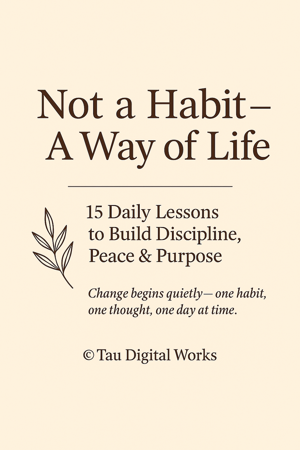 A beautifully designed motivational PDF by Tau Digital Works that guides you to live with calm focus and daily intention. Through 15 simple yet powerful lessons, you’ll learn to wake early, act boldly, stay peaceful, and build a life rooted in purpose — not pressure. Every page is written with warmth and balance, blending timeless wisdom with elegant boho-cream design. “Change begins quietly — one habit, one thought, one day at a time.”